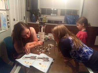 Bill and Erin are our twin baby siblings. (An aside to real life: these two actually have the same birthday, Bill born in 1999 and Erin in 2000.) They're 8 years old, Bill born a few minutes before Erin. As with many twins, they bring out each other's competitiveness and stubbornness. They both love to drive more than anyone else on the team, and when we go on group outings, there's often a dramatic fight for the driver's seat. The first two photos are from the same moment, Erin photographing Bill driving on a ferry into Mammoth Cave, and Bill photographing Erin next to the car posing. On lucky days as in the next photo, the twins are twinning in their blue jerseys.