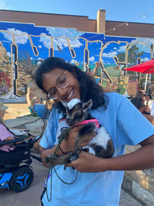 Or the post-learning festival afternoon, where puffy cotton ball clouds dotted the blue sky and the sun’s harshness was softened by the approaching evening. We found live music in the corner on the block, and a small baby goat wearing a diaper. We’ve designated her as the (un)official Spokes pet.